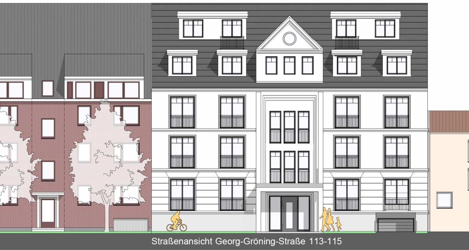 In der Georg-Gröning-Str. 113 – 115 entstehen diese 8 Wohnungen mit Seltenheitswert, in einer kleinen privaten Anlage.
